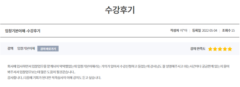 전자입찰교육원에서 입찰교육후기라는 새로운 컨텐츠로