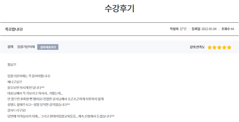 소중한 후기를 토대로 항상 발전하는 전자입찰교육원이 되겠습니다.