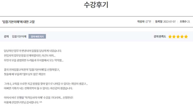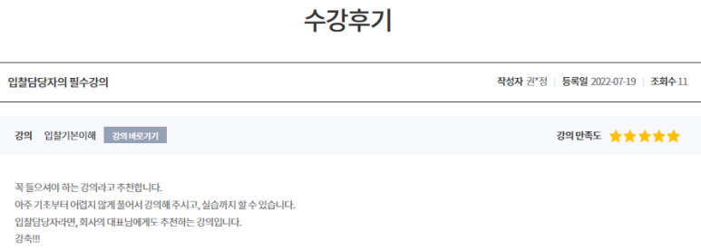 수강하신 회원님들께서 직접 후기를 남겨주셨습니다.