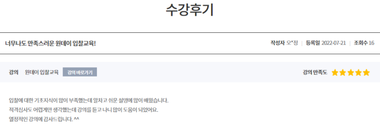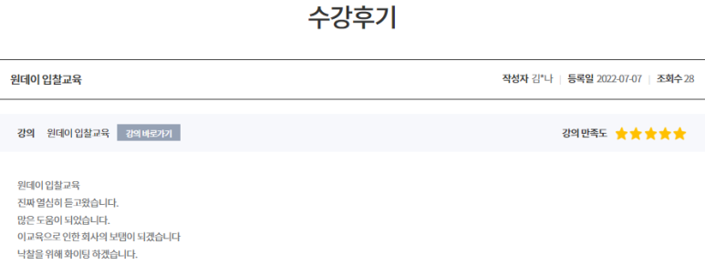 오랜만에 회원님들께 원데이 입찰교육 후기를 소개합니다.