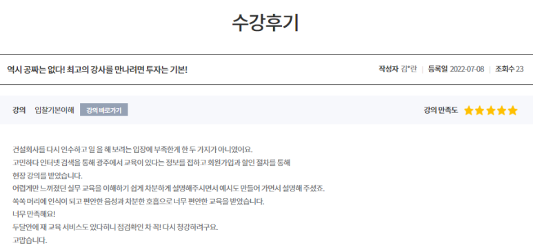 직접 교육을 수강하신 회원님들께서 남겨주신 솔직한 후기가