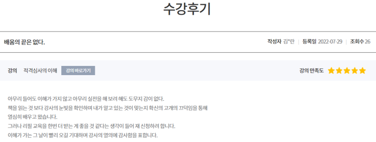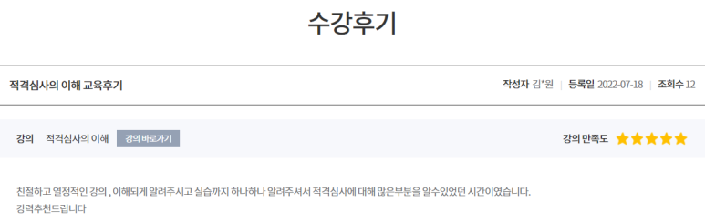 이 날 교육을 수강하신 회원님들께서 직접 남겨주신 수강후기입니다.