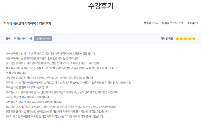 시공경험, 경영상태 평가에 대해 배우고 실습할 수 있다는 점.