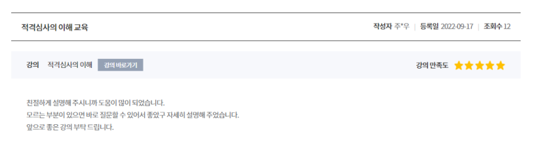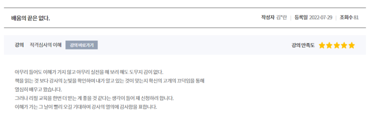 강의를 들으신 후 항상 정성스러운 후기를 남겨주시는 회원님들 감사합니다.