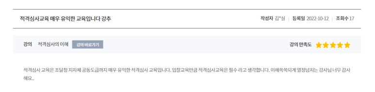 하지만 전자입찰교육원 홈페이지에 방문해 후기를 보면