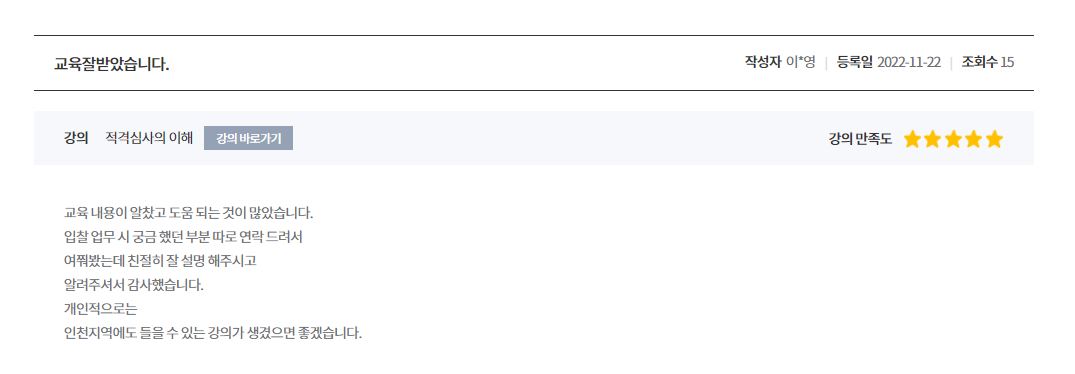 | [입찰교육후기] 적격심사 마스터 교육 (0) | 2022.11.14 |