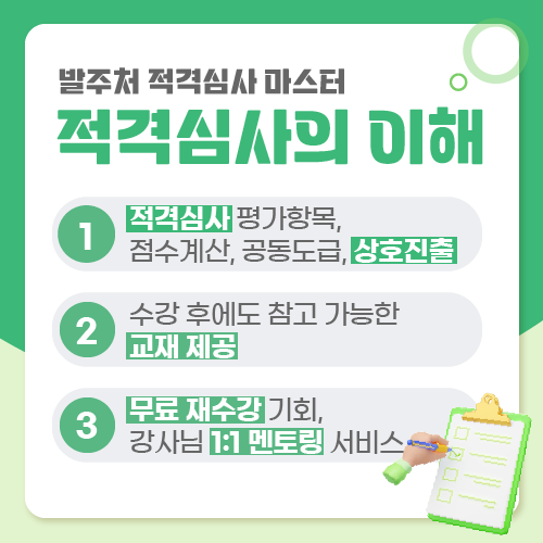 적격심사에 관련된 모든 것을 담은 교육입니다.