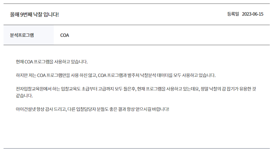 | [입찰교육후기] 사정률 직접 산출, COA분석프로그램 (0) | 2023.06.28 |