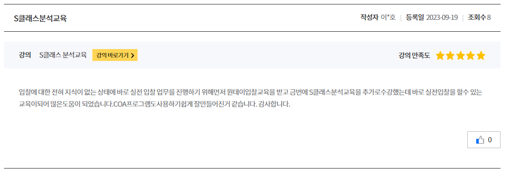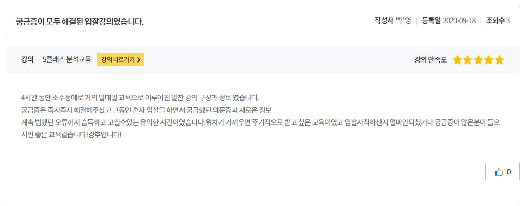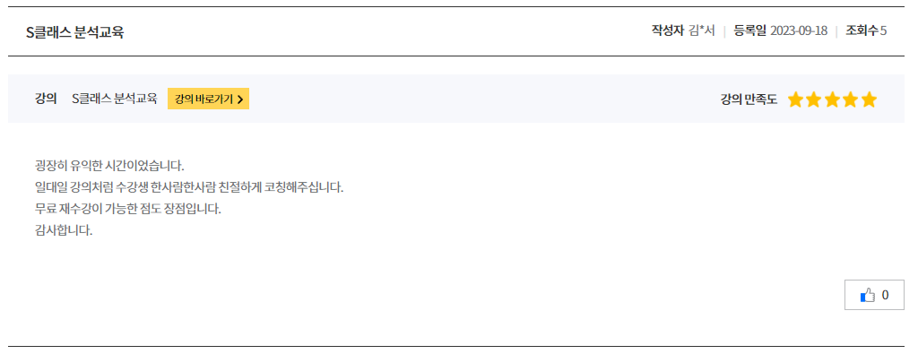S클래스 분석교육을 수강하신 회원님의 후기 함께 보실까요~?