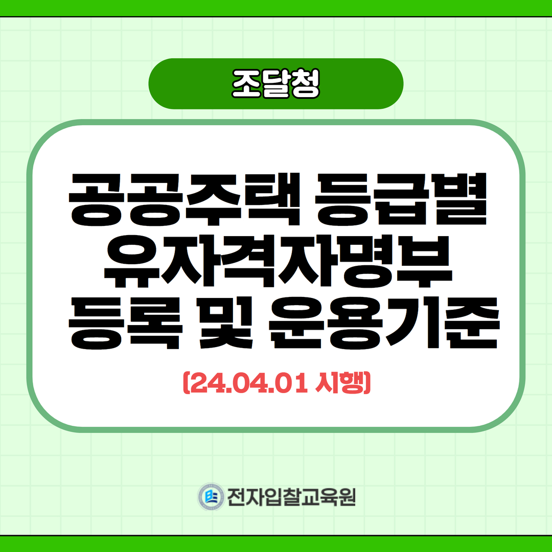 [조달청] 공공주택 등급별 유자격자명부 등록 및 운용기준 개정 시행내용 공유드리니