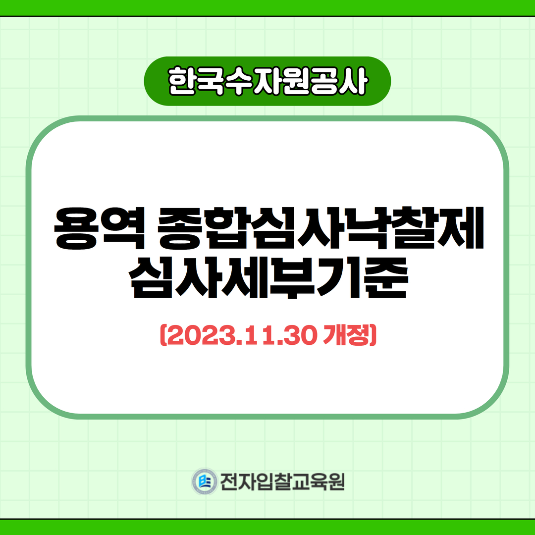 [한국수자원공사] 용역 종합심사낙찰제 심사세부기준 내용이 개정되어 해당 내용 안내드립니다.