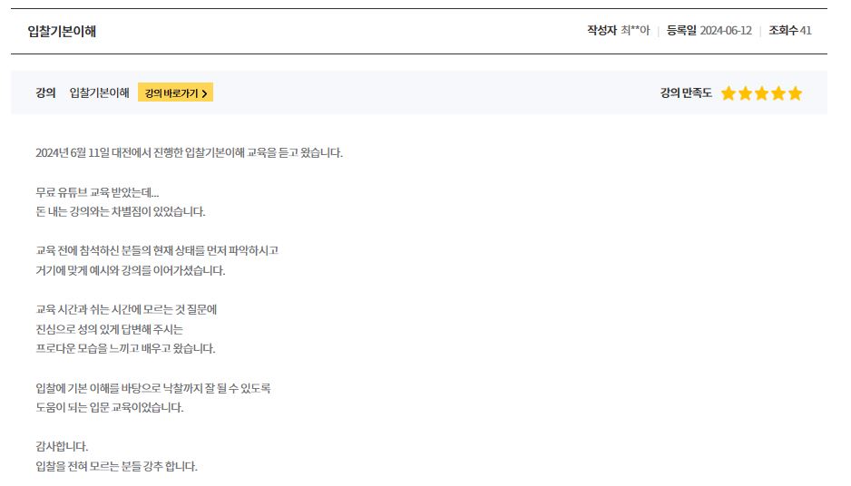 생생한 수강생들의 후기가 증명하는 전자입찰교육원 강의!