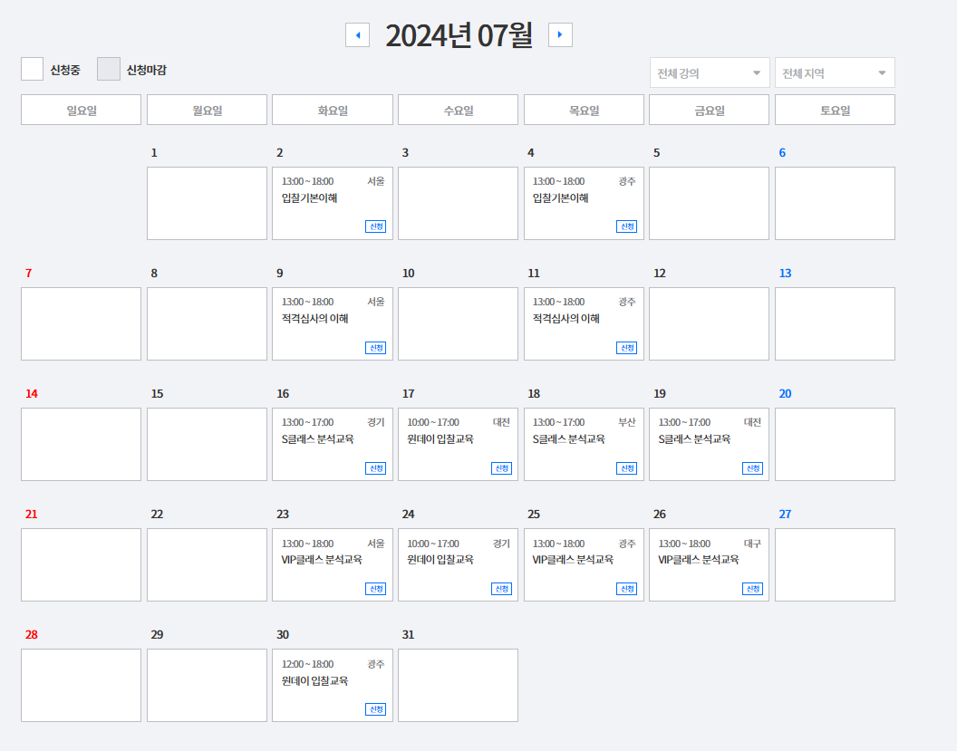 확인하시고 원하시는 지역과 날짜에 신청하시길 바랍니다^^